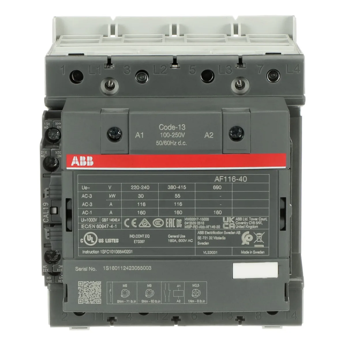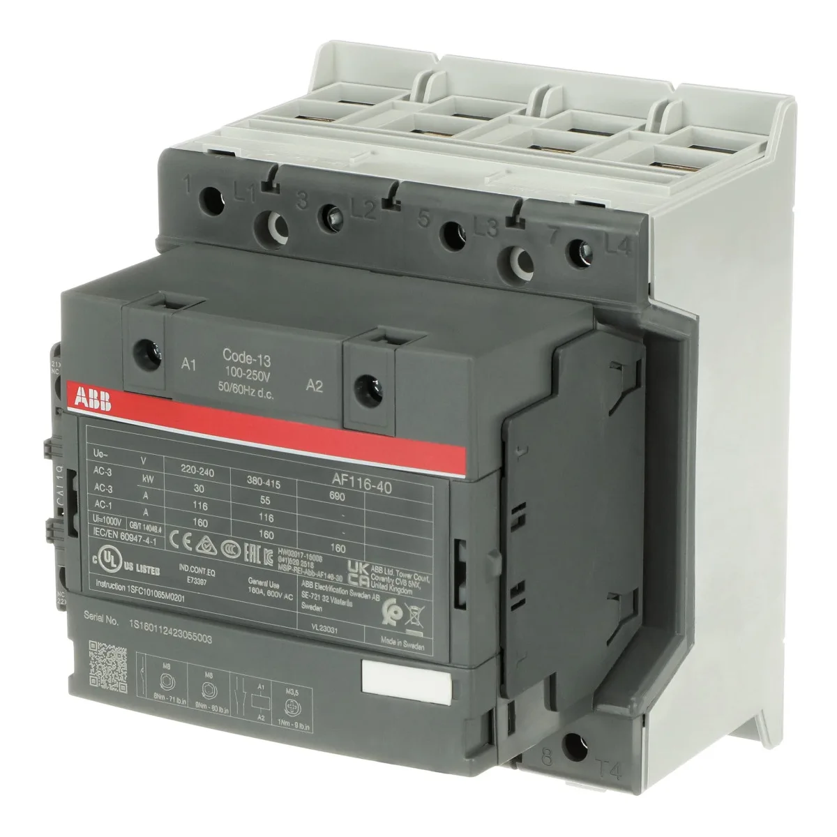 ABB AF140-40-11-13 75kW 140A 4 Kutuplu Güç Kontaktörü (100-250V)