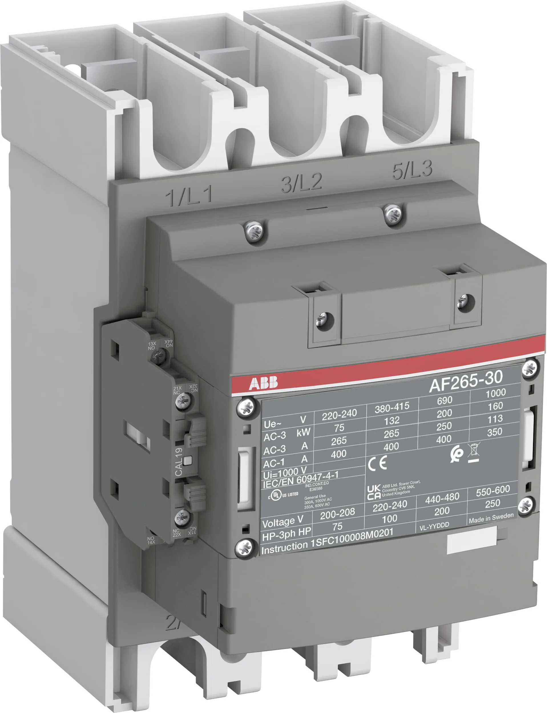 ABB AF265-30-11-11 132kW 265A Güç Kontaktörü (24-60V) 1SFL547002R1111