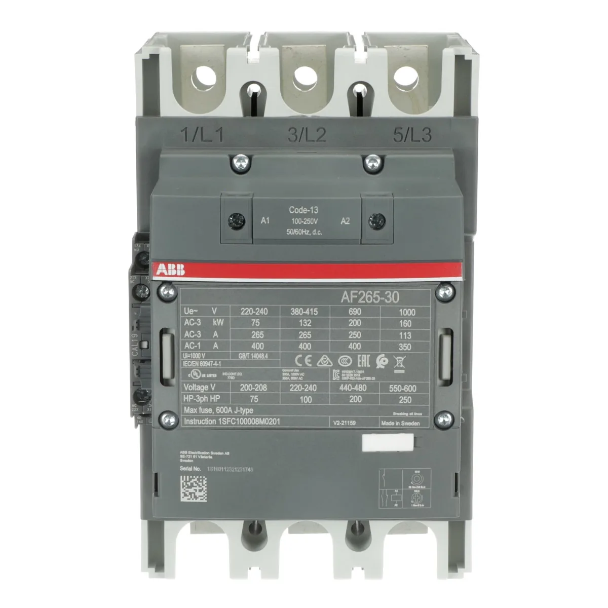 ABB AF265-30-11-13 132kW 265A Güç Kontaktörü (100-250V)