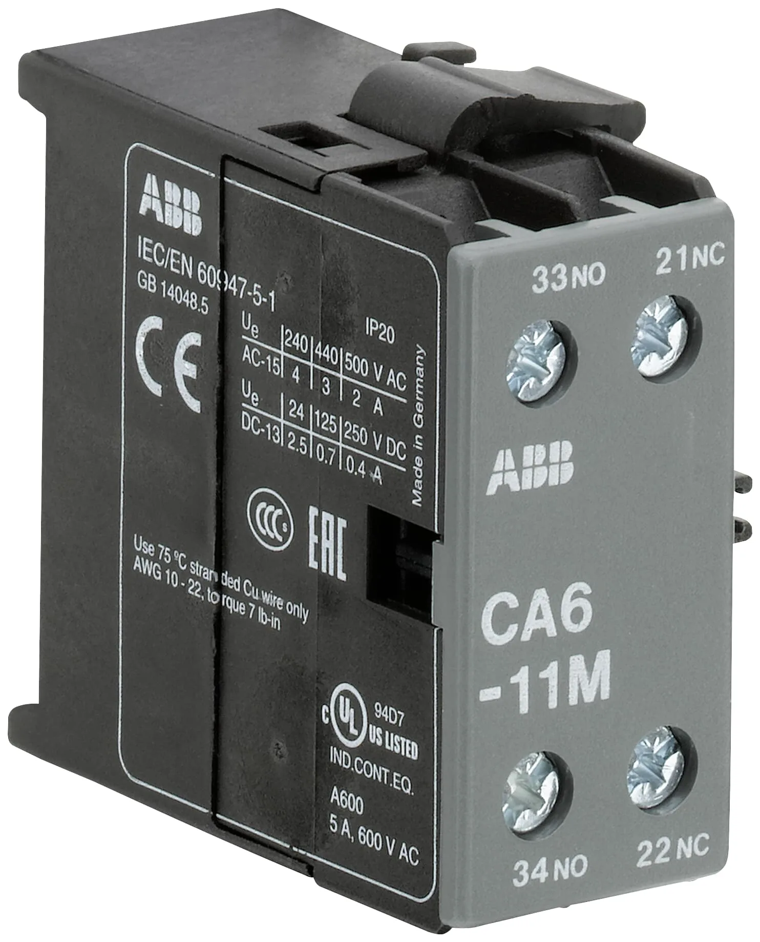 ABB CA6-11M Yardımcı Kontak Bloğu (1NO+1NC – Yan Montaj)