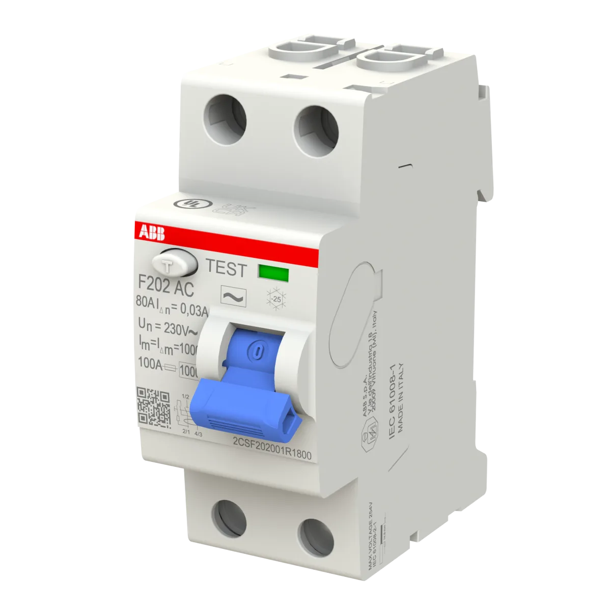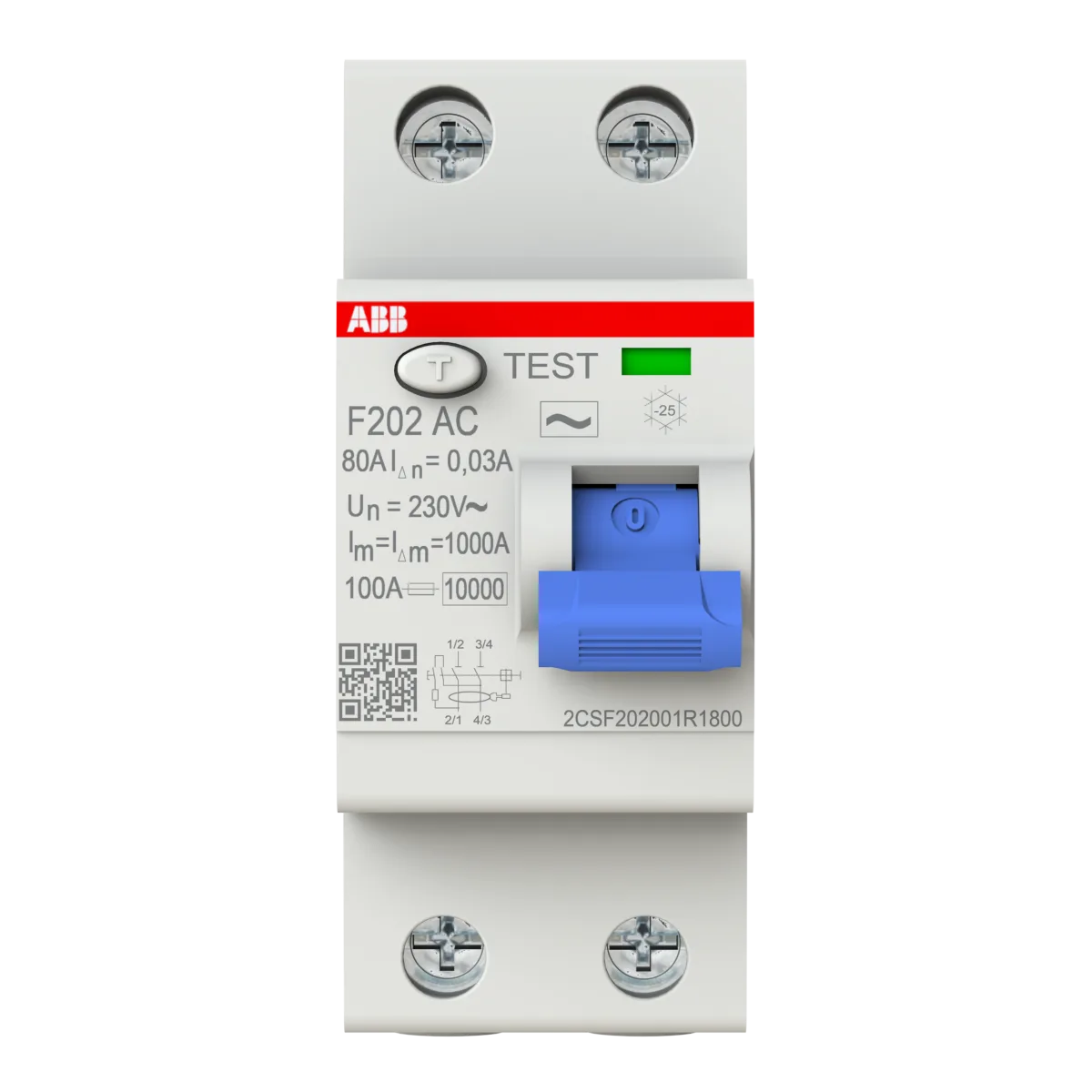 ABB F202 AC-80/0.03 80A 30mA 2 Kutuplu Kaçak Akım Rölesi (AC Tipi)