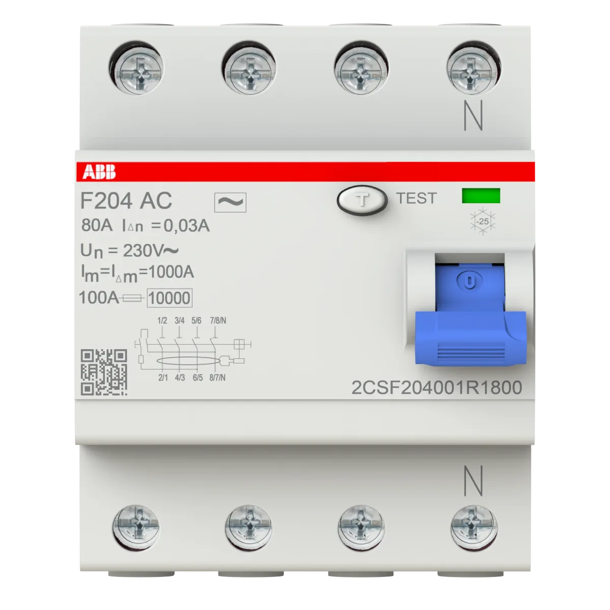 ABB F204 AC-80/0.03 80A 30mA 4 Kutuplu Kaçak Akım Rölesi (AC Tipi)