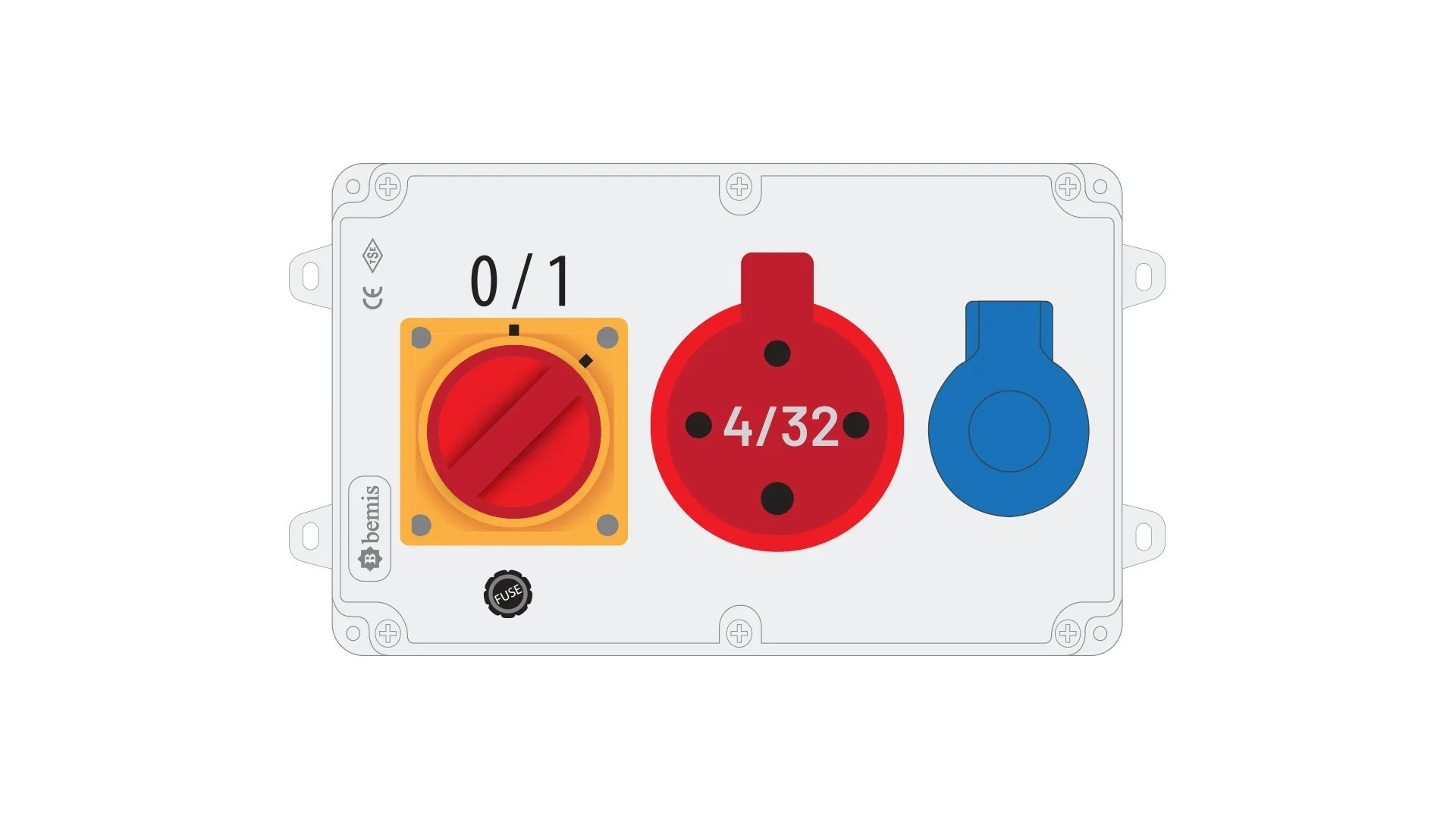 Bemis 4/32A 380V IP44 1 Adet 1/16A 220V IP44 1 Adet Prizli Termal Sigortalı Şalterli Kulpsuz Powerbox IP44