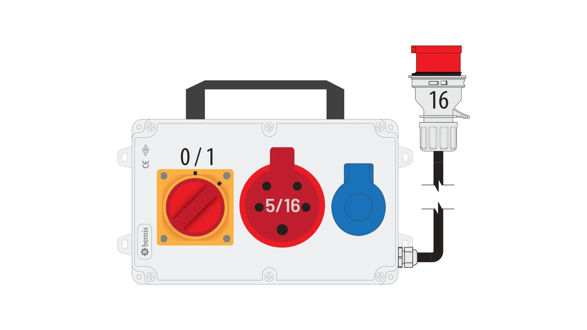 Bemis 5/16A 380V IP44 1 Adet 1/16A 220V IP44 1 Adet Prizli Şalterli Kulplu 5/16A Fişli Powerbox IP44