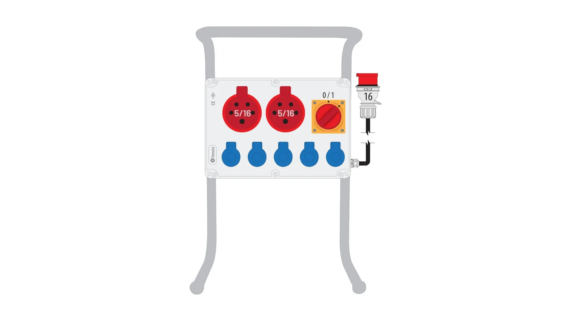 Bemis 5/16A 380V IP44 2 Adet 1/16A 220V IP44 5 Adet Prizli Şalterli Boru Ayaklı 5/16A Fişli Powerbox IP44