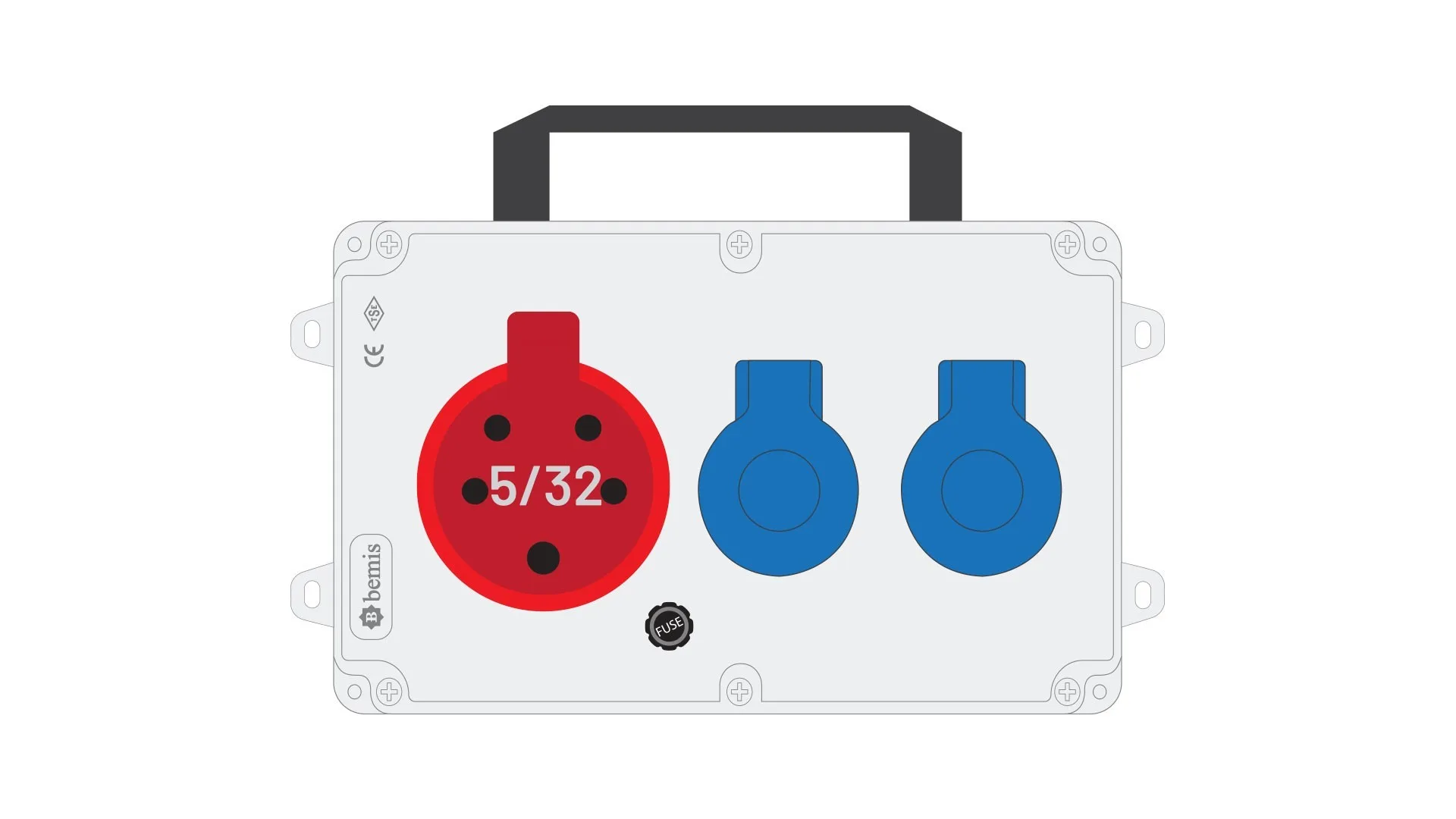 Bemis 5/32A 380V IP44 1 Adet 1/16A 220V IP44 2 Adet Prizli Termal Sigortalı Kulplu Powerbox IP44