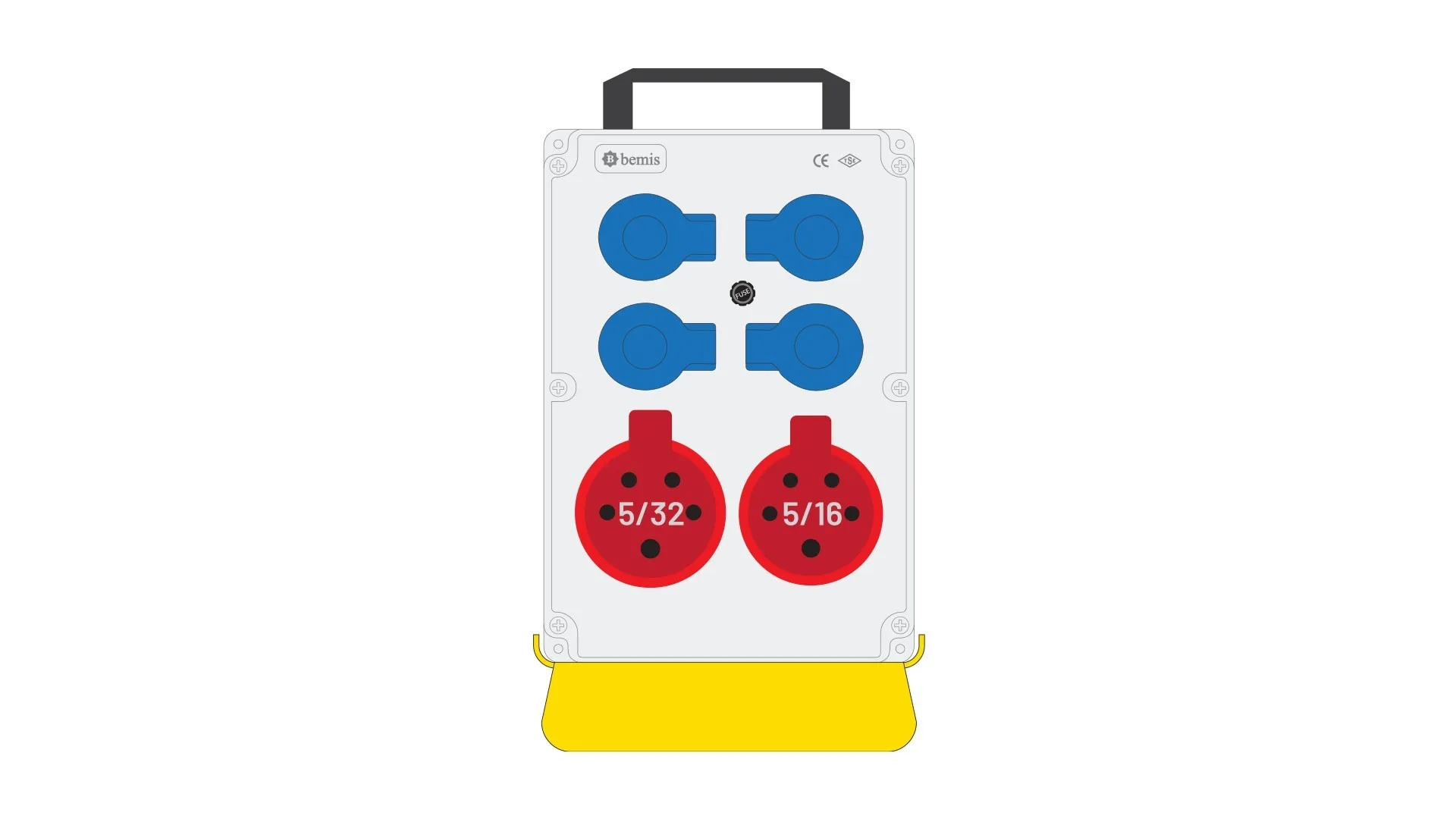 Bemis 5/32A 380V IP44 1 Adet 5/16A 380V IP44 1 Adet 1/16A 220V IP44 4 Adet Prizli Termal Sigortalı Kulplu Destek Ayaklı Powerbox IP44