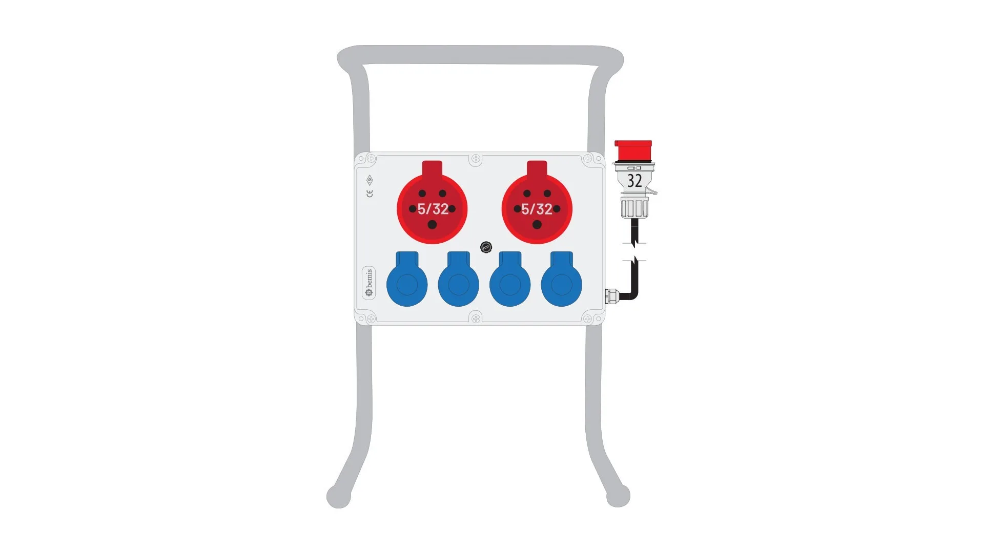 Bemis 5/32A 380V IP44 2 Adet 1/16A 220V IP44 4 Adet Prizli Termal Sigortalı Boru Ayaklı 5/32A Fişli Powerbox IP44