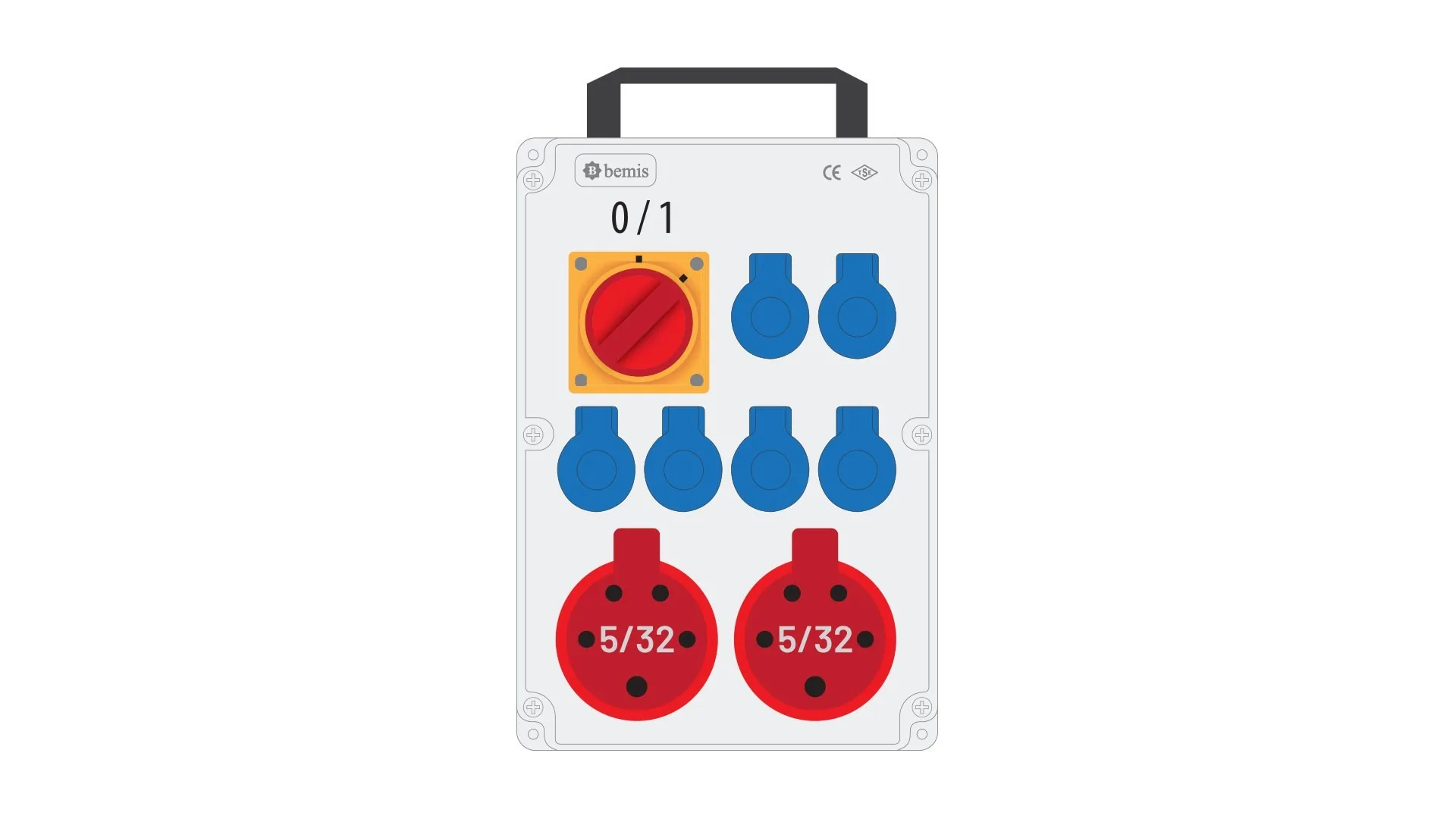 Bemis 5/32A 380V IP44 2 Adet 1/16A 220V IP44 6 Adet Prizli Şalterli Kulplu Powerbox IP44