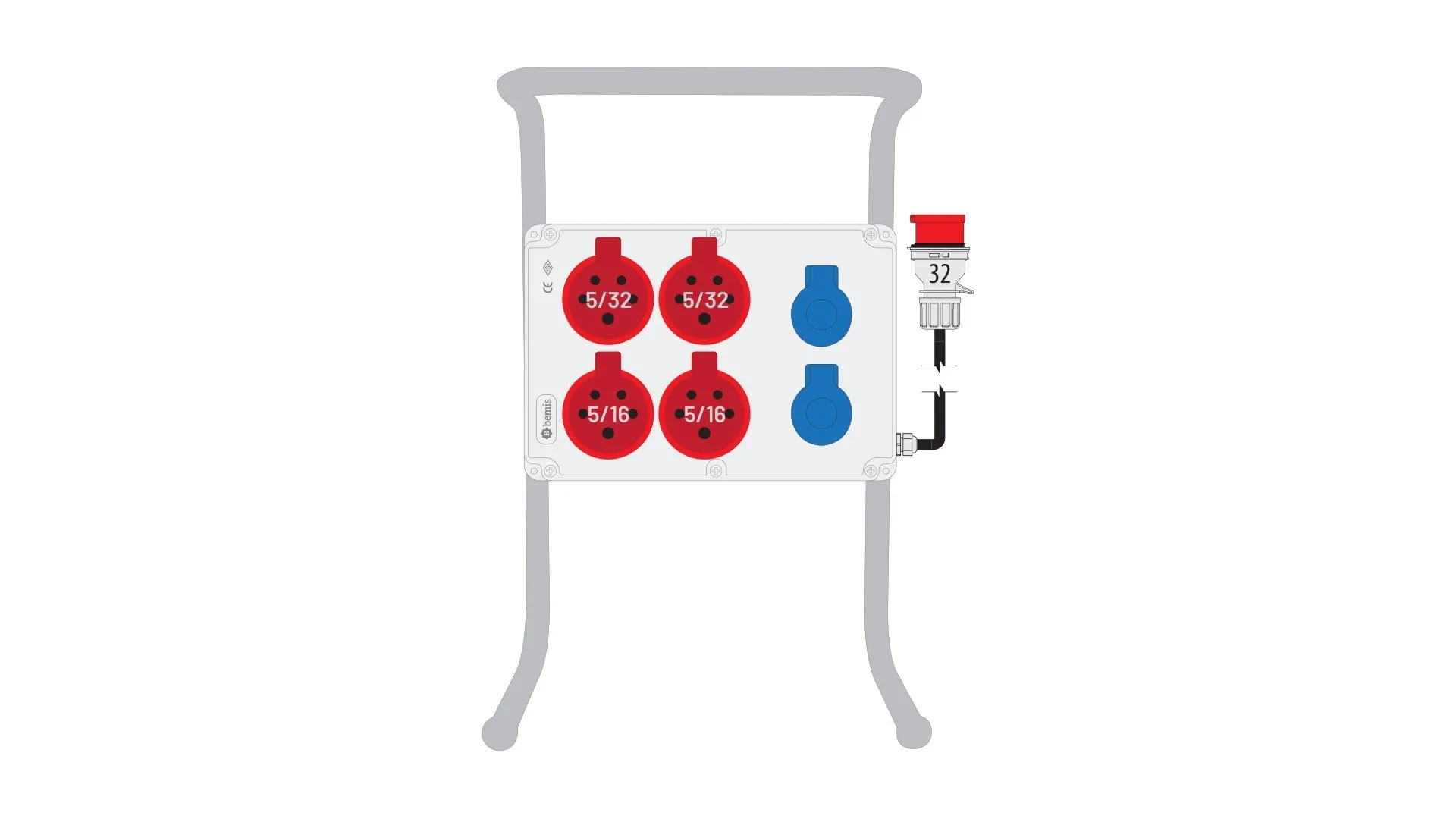 Bemis 5/32A 380V IP44 2 Adet 5/16A 380V IP44 2 Adet 1/16A 220V IP44 2 Adet Prizli Boru Ayaklı 5/32A Fişli Powerbox IP44