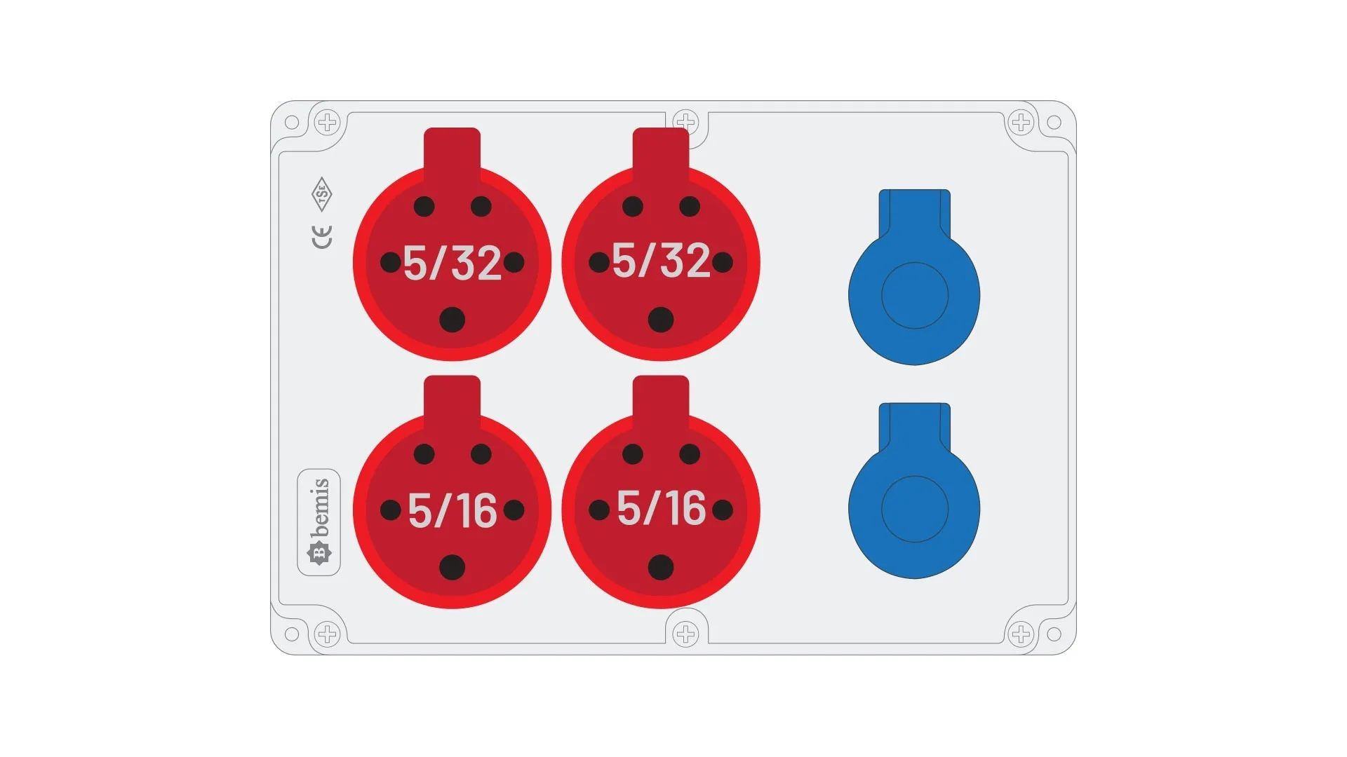 Bemis 5/32A 380V IP44 2 Adet 5/16A 380V IP44 2 Adet 1/16A 220V IP44 2 Adet Prizli Kulpsuz Powerbox IP44