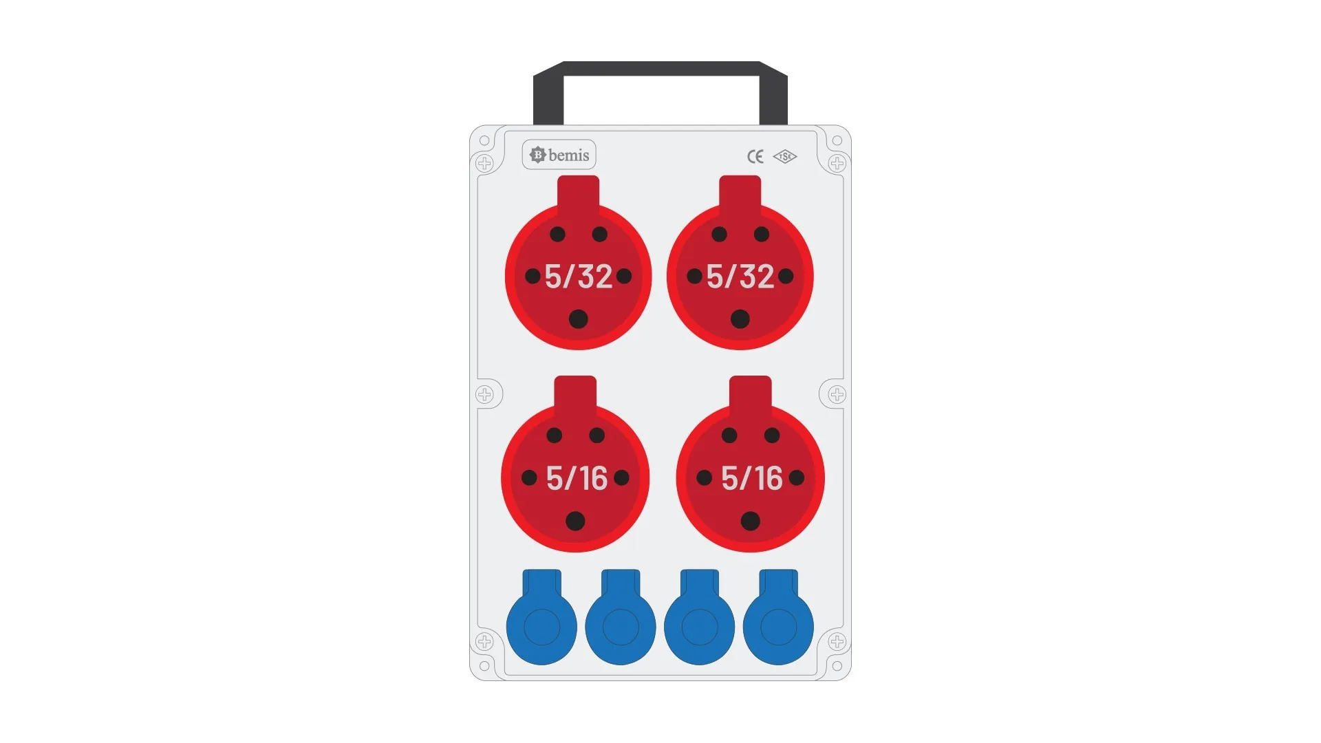 Bemis 5/32A 380V IP44 2 Adet 5/16A 380V IP44 2 Adet 1/16A 220V IP44 4 Adet Prizli Kulplu Powerbox IP44