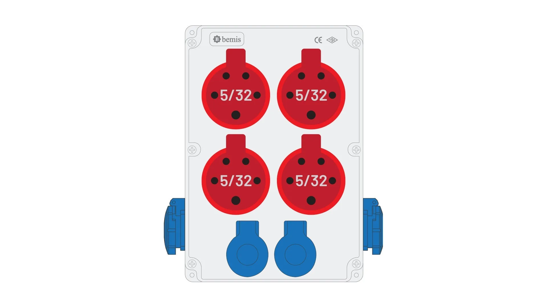 Bemis 5/32A 380V IP44 4 Adet 1/16A 220V IP44 2 Adet Ön 1/16A 220V IP44 2 Adet Yan Prizli Powerbox IP44