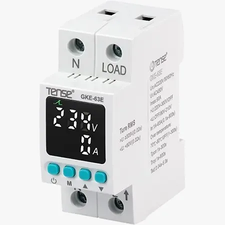 Tense GKE-63E, 63A direkt bağlantılı monofaze gerilim ve akım koruma rölesidir. Aşırı/düşük gerilim, aşırı akım ve faz kaybı koruması sunarak elektrikli cihazlarınızı güvence altına alır.