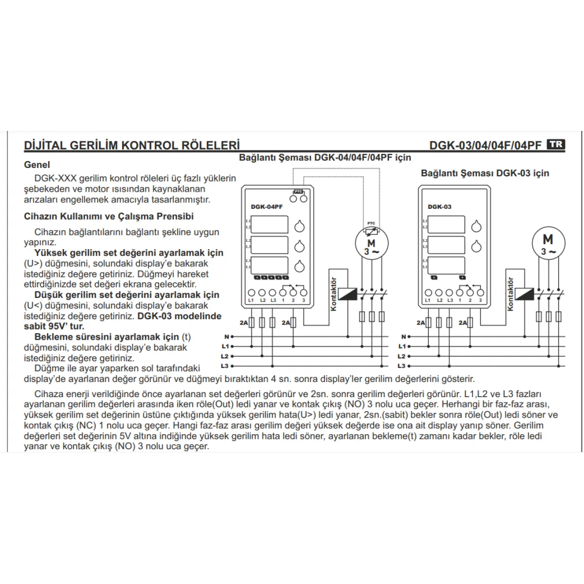 - Dijital Ekran ve Ayarlar – Gerilim değerlerini ve röle ayarlarını net bir şekilde gösteren dijital ekran ve kolay ayarlanabilir parametreler.