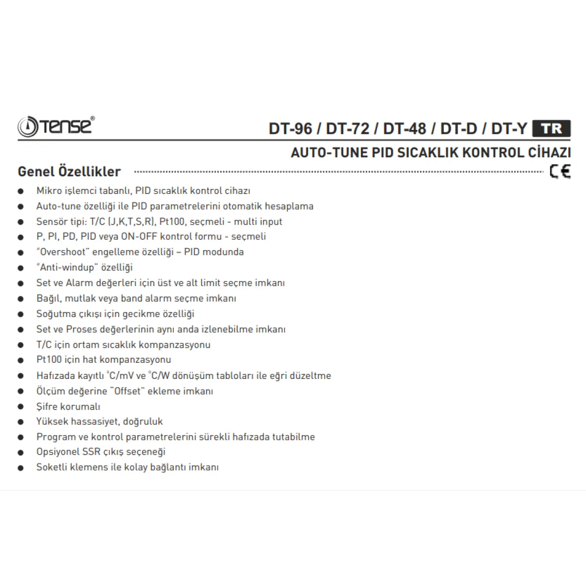 Tense DT-Y, sunduğu üstün özelliklerle standart sıcaklık kontrol cihazlarından ayrılır. Geniş sensör uyumluluğu, gelişmiş kontrol algoritmaları ve entegre alarm/çıkış seçenekleri, onu endüstriyel uygulamalar için vazgeçilmez kılar.