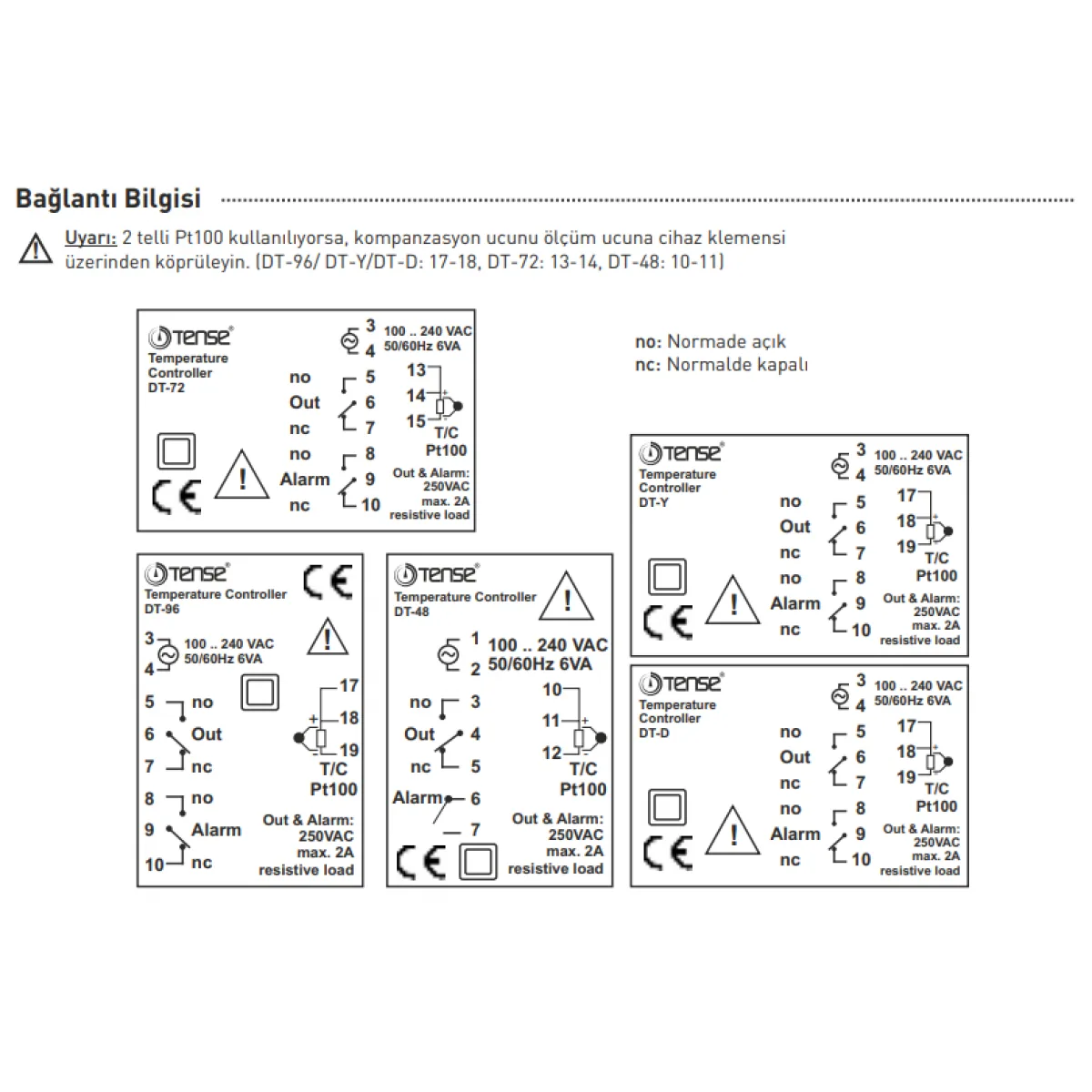 Tense DT-Y Opsiyonel Sıcaklık Kontrol Cihazı,J,K,R,S,PT100,PID,ON-OFF,Alarm ve Kontak Çıkış,48x96mm
