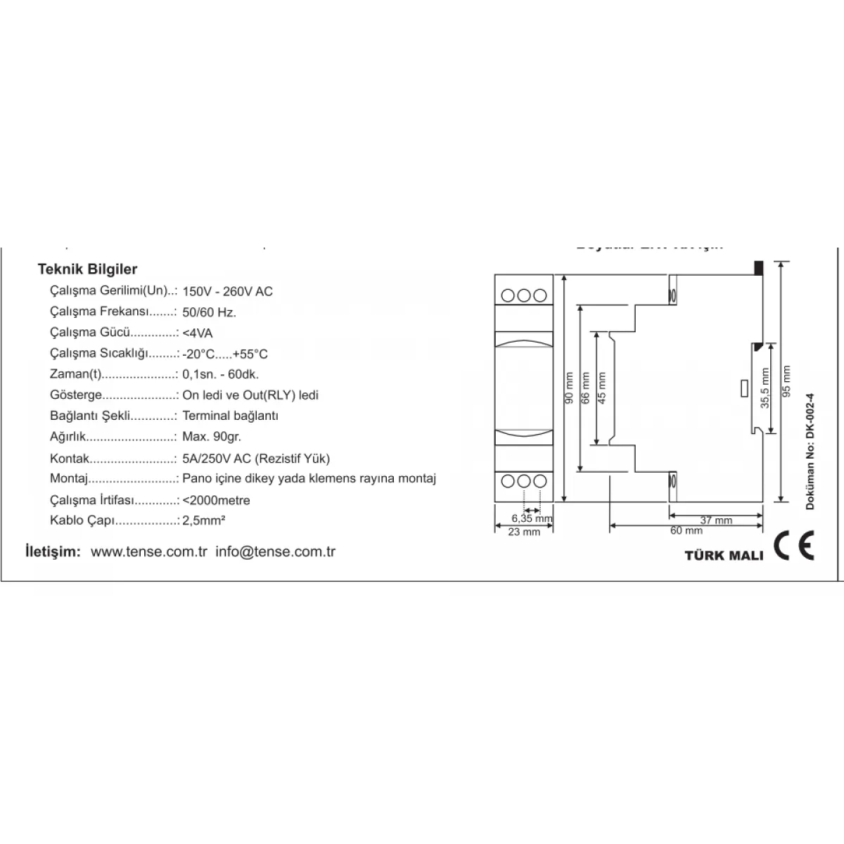 Tense ER-30, sunduğu hassas zamanlama yeteneği ve endüstriyel kullanıma uygun dayanıklı yapısıyla öne çıkar. Kompakt DIN ray montajı, kolay entegrasyon sağlarken, 30 saniyelik ayarlanabilir zaman aralığı birçok uygulama için yeterli esnekliği sunar. Güvenilir anahtarlama kapasitesi ve Tense markasının kalitesi, uzun ömürlü ve sorunsuz bir kullanım vaat eder.