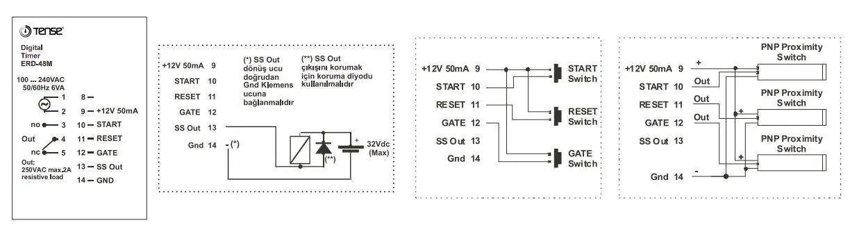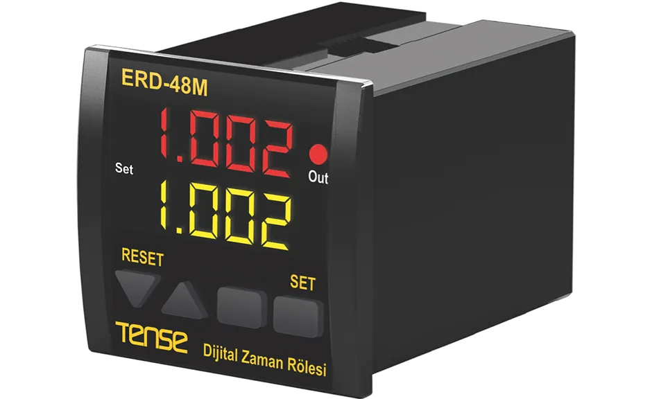 Tense Erd-48M, sunduğu esnek çalışma modları ve yüksek hassasiyeti ile standart zaman rölelerinin ötesine geçer. 13 farklı çalışma modu sayesinde, projenizin özel ihtiyaçlarına en uygun zamanlama senaryosunu kolayca yapılandırabilirsiniz. 24VDC’lik proximity switch giriş desteği, modern sensör teknolojileriyle entegrasyonu kolaylaştırırken, kompakt 48x48mm boyutu da pano içi yer tasarrufu sağlar.