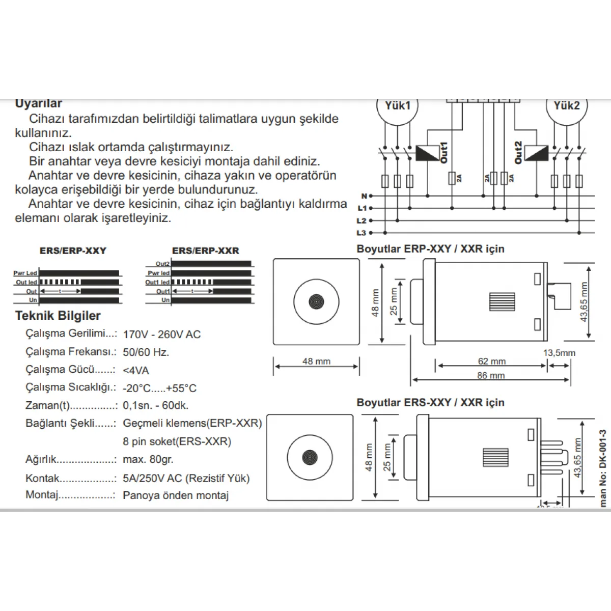 Tense ERP-60DY Zaman Rölesi 60DK,PANO Tipi 48X48MM