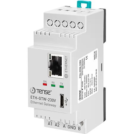 Tense ETH-GTW-230V Ethernet Modem, Rs-485, TCP-IP Uyumlu, 10/100 Mbps Ethernet, İzoleli, MODBUS İletişim, Maksimum 230400 Bps Besleme: 230V AC
