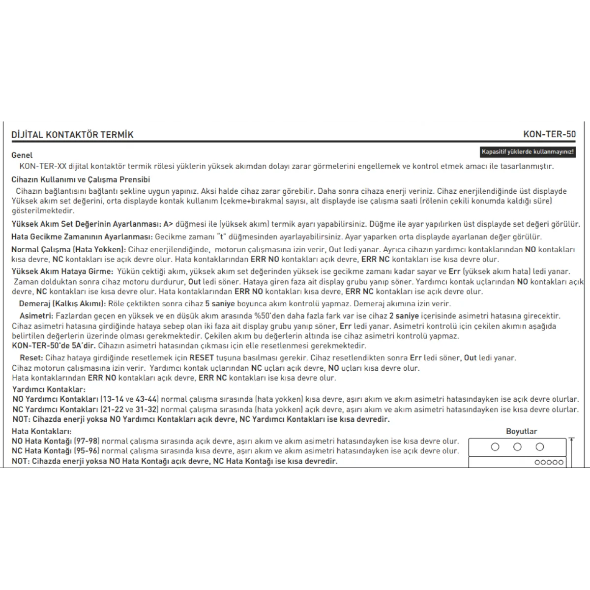 Tense markasının ürünü olan Tense KON-TER-50 Dijital Kontaktör Termik (25-50A Ayar Sahalı, 22 kW'a kadar), Kontaktörler kategorisinde endüstriyel kullanım için üretilmiştir.
