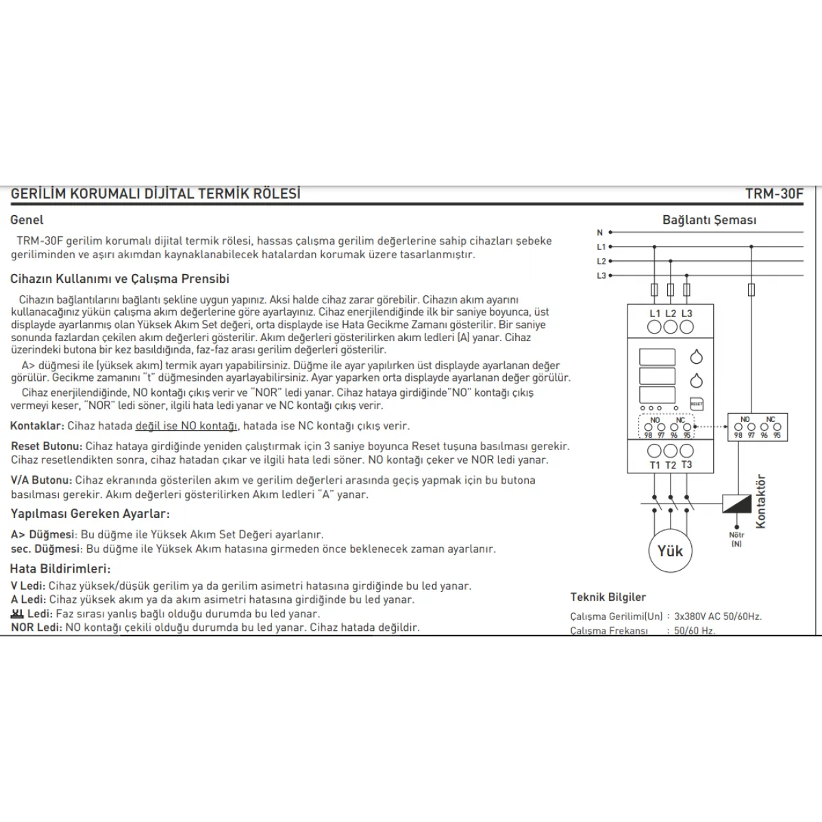 Tense markasının kalitesi ve güvencesiyle sunulan TRM-30F, endüstriyel uygulamalarınız için akıllı bir yatırımdır. Hassas koruma özellikleri sayesinde ekipmanlarınızın ömrünü uzatır, arıza maliyetlerini düşürür ve operasyonel verimliliğinizi artırır. Endüstriyel standartlara uygunluğu ve kolay entegrasyonu ile projelerinizde güvenle tercih edebileceğiniz bir çözümdür.